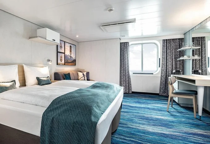 AUAO - Kajuta s oknom kat. A 17 m². Neotvárateľné okno. 3,8. paluba. Max 4 osoby. 6 666 € 2 222 € za osobu
