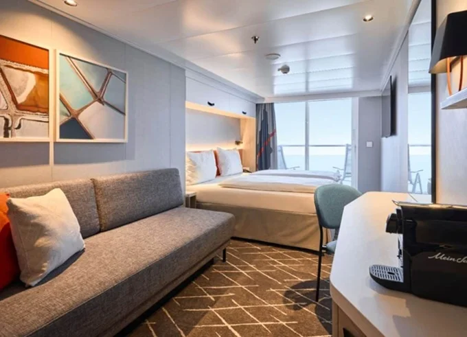 BAUR - Kajuta s balkónom PUR 17 m² + balkón 5 m². Max 4 osoby. Cenový model PUR. 1 947 € 649 € za osobu