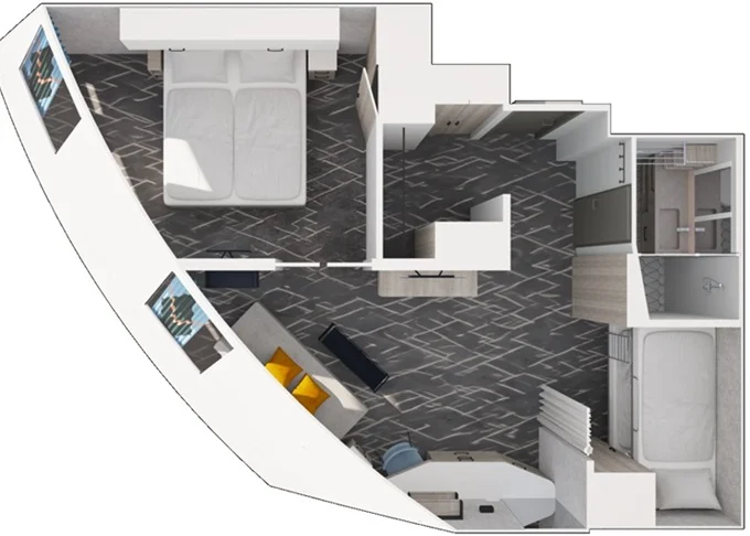 BAAO - Kajuta s balkónom kat. A 17 m² + balkón 5-7 m². 14. paluba. Max 4 osoby. 3 292 € 3 292 € za osobu
