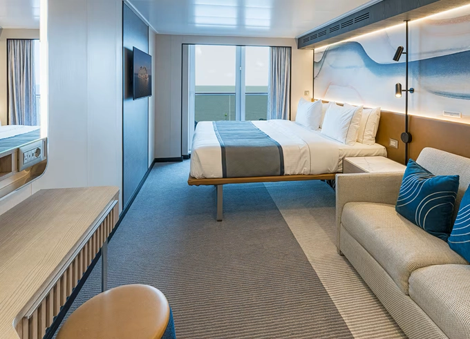 | MB - Club Suite Forward-Facing s balkónom 22 - 25 m² / balkón 7 m². 9. až 13. paluba - vpredu. Max 2 osoby. Výhody Club. | 4 124 € 2 062 € za osobu | ||